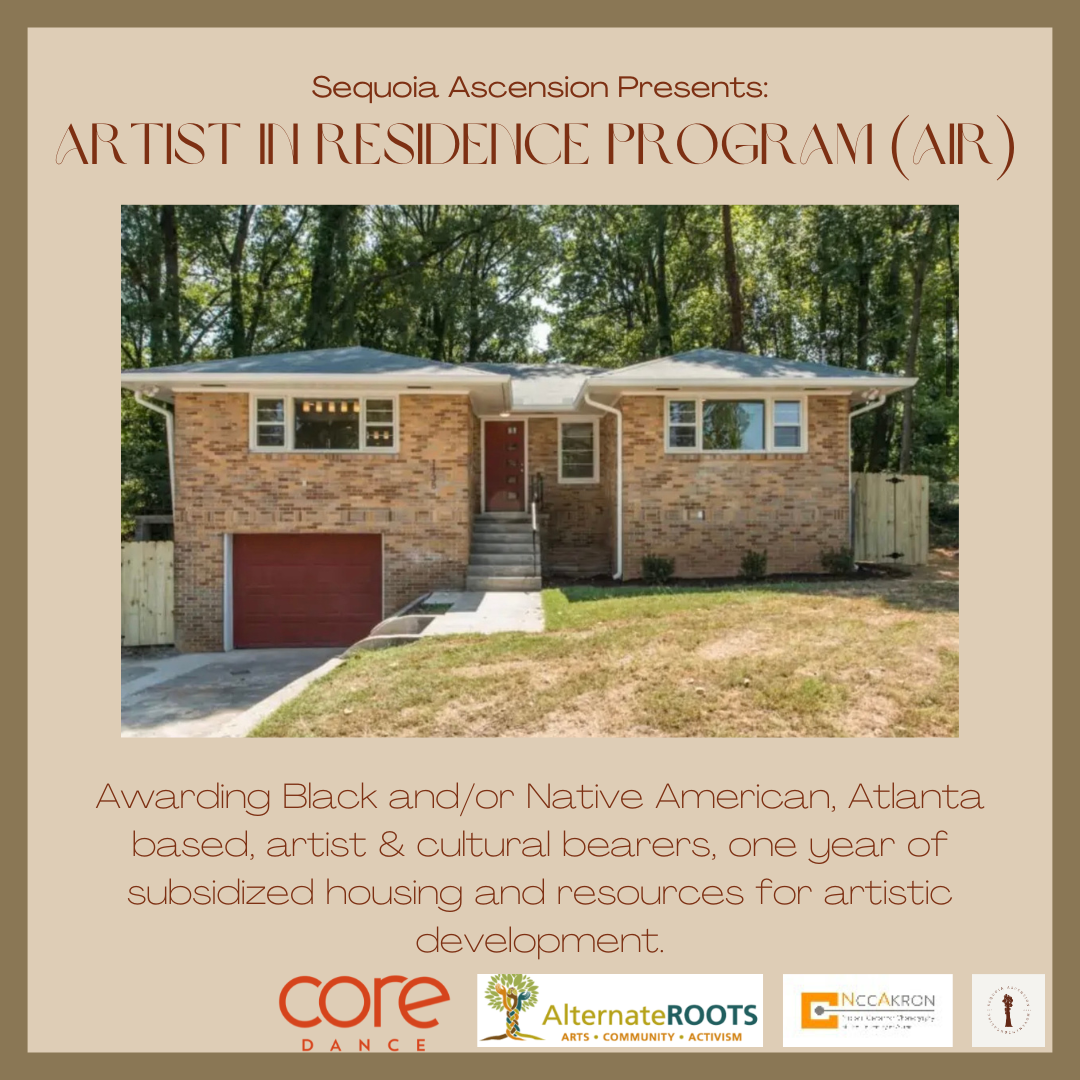 Sequoia Ascension’s housing initiatives focus on creating spaces that foster a sense of belonging and sanctuary for our communities. Our Artist in Residence Program offers a year of subsidized housing to artists and culture bearers, while our Subsidized Studio Space for Spelman College dance majors supports the creative aspirations of emerging artists. We also offer an Affordable Student Housing Program and advocate for ethical land use practices in Atlanta’s art spaces. This advocacy is grounded in our deep connection to the land, informed by our Native stewardship traditions, and shaped by our commitment to sustainability. By ensuring that our community has access to safe, supportive spaces, Sequoia Ascension strengthens the foundation on which our creative work and traditions can flourish